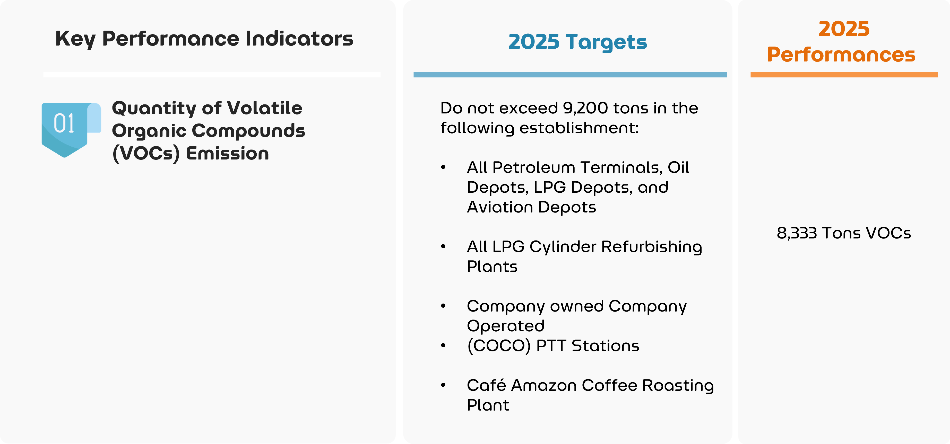 OR emphasizes pollution control in compliance with legal requirements to prevent negative impacts from pollution caused by its operations. The main type of pollutant generated by OR’s activities is Volatile Organic Compounds (VOCs), which are produced during various activities related to fuel storage, transportation, and trading. Therefore, OR has established a VOCs inventory to monitor emissions from activities at Petroleum terminals, Oil depots, Gas Depots, PTT Stations, and LPG cylinder refurbishing plants. This inventory is updated annually to ensure continuous monitoring of VOCs volatilization in the areas. The data is then analyzed to develop systems and monitoring to reduce VOCs volatilization into the environment.