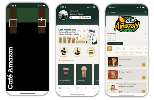 Café Amazon offers three core services: Order & Pay (advance beverage ordering with in-store pickup), Delivery, and Catering (advance catering orders). These services enhance customer convenience in ordering coffee and accessing Café Amazon services, effectively responding to lifestyle needs that prioritize speed and convenience. In addition, customers can accumulate blueplus+ points through the application.