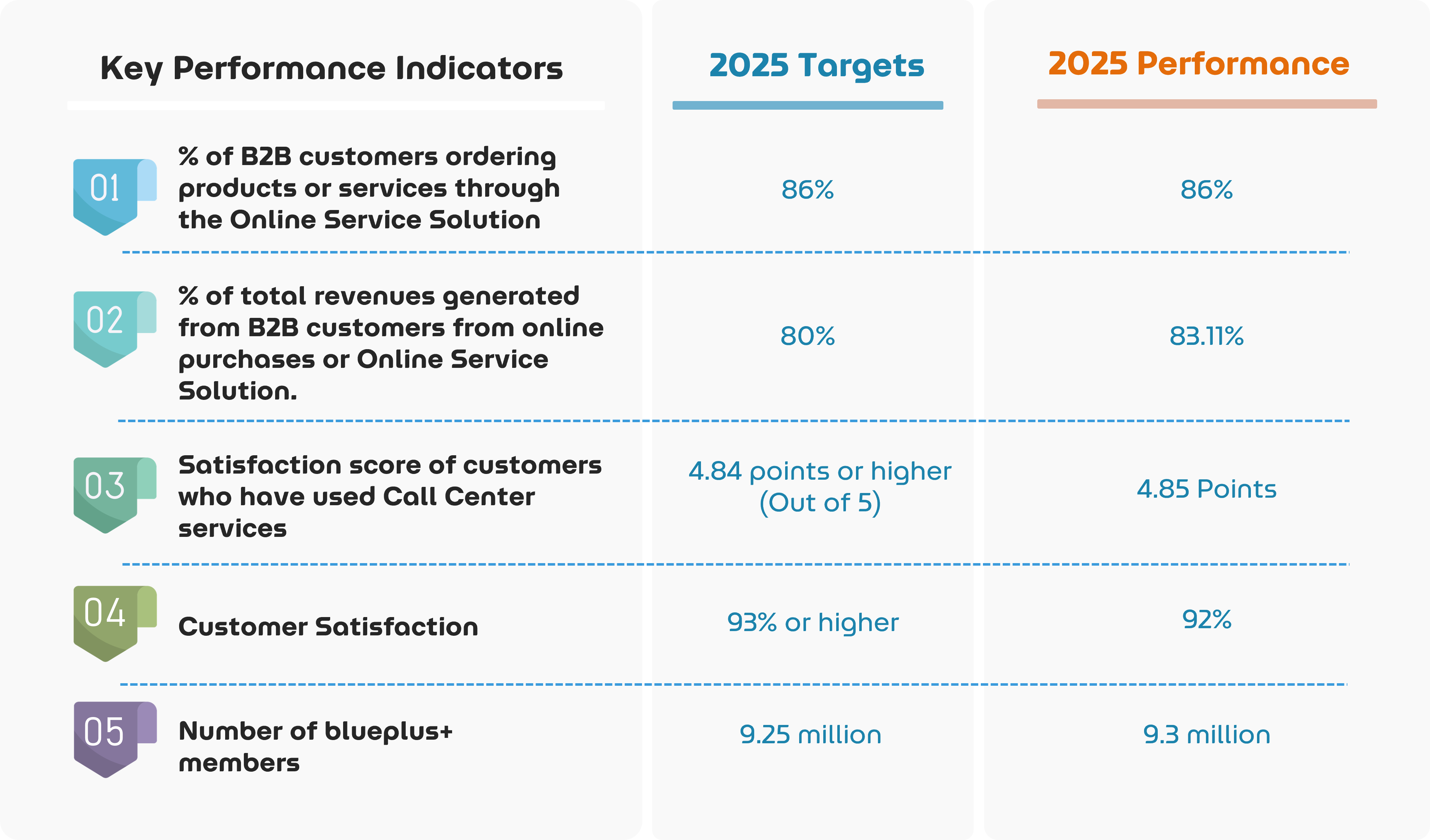 Accordingly, OR is committed to sustainable business development with a customer-centric approach, operating with transparency and accountability, and maintaining stringent customer data protection practices. OR provides channels for customers to express opinions and reflect their needs, and establishes control measures to prevent and promptly address potential issues. In addition, OR places importance on continuous monitoring and assessment of customer satisfaction, using the results to continuously improve and enhance service quality, thereby creating positive customer experiences, confidence, and long-term trust, while preventing adverse impacts on stakeholders.