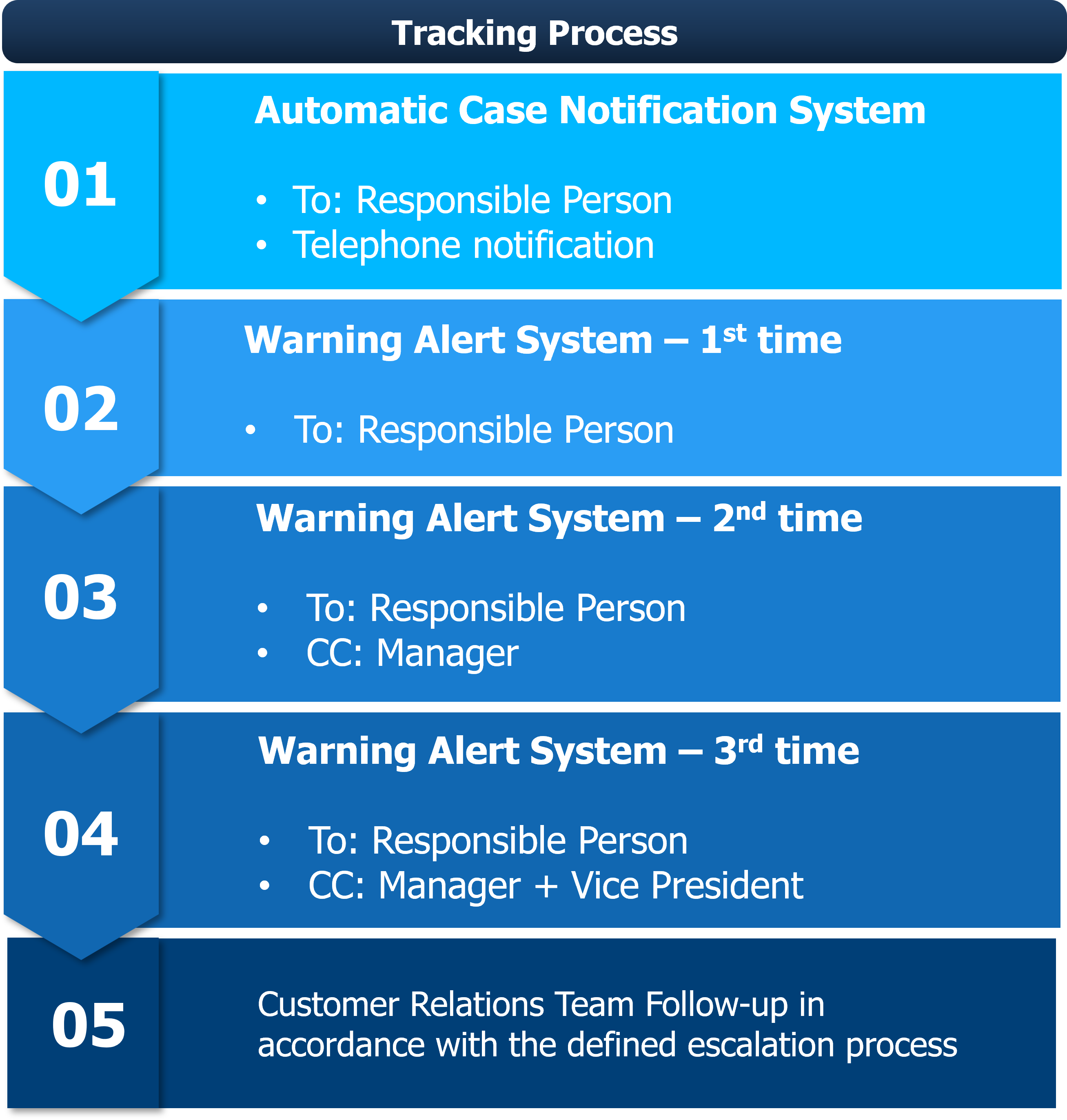 In addition, the results of customer data analyses are presented to the OR Management Committee (ORMC) on a quarterly basis, and topics related to SSHE are presented to the OR Group Quality, Safety, Health, and Environment Management Committee (OR QSHE GMC), which is chaired by the Chief Executive Officer and President. At the meeting, key complaints are summarized and classified by business category. After the Committee is reported of the complaints, they will then assign responsibility to relevant departments to take corrective action and follow up on the progress of such complaints. Relevant departments will also be assigned to close the worksheet according to the Service Level Agreement that the department has set. Process is as follows.