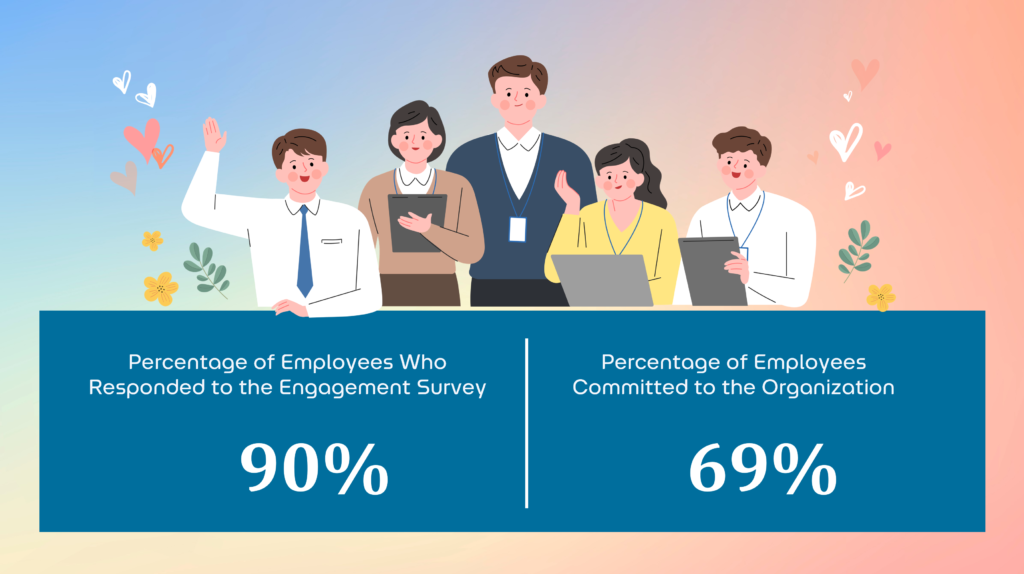 In the 2024 Employee Engagement Survey, 91 % of all employees participated in the employee engagement survey, and 69 percent of employees addressed engagement with the organization. In 2024, the organization implemented a plan to enhance employee engagement to address key issues based on the analysis results of the 2023 employee engagement survey, such as senior executive factors, work-life balance factors, and infrastructure and resource factors. The results of the survey will be presented to the Human Resource Management Committee (HRMC) meeting to acknowledge the results of the survey and consider approving the plan for improving employee engagement with OR as a whole. Furthermore, the employee engagement survey results, including department-specific findings, were communicated to management, ensuring that managers were informed of the survey outcomes and taking corrective actions based on the work context, supplementary from the overall plan to enhance employee engagement across OR. as well as allocating appropriate workspaces to reduce congestion, such as renting additional office space and parking buildings to meet demand and accommodate the increasing number of employees in line with continuous business growth.