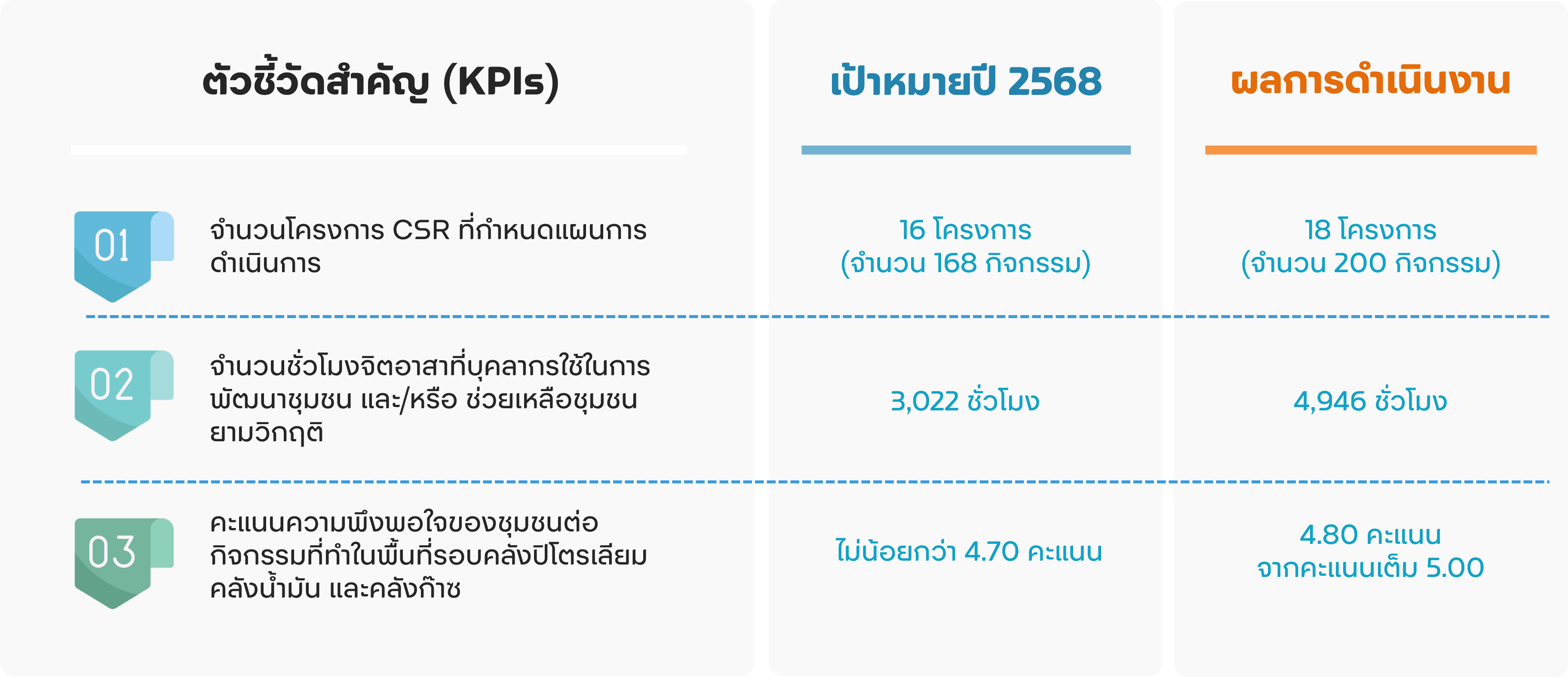 | โครงการแยก แลก ยิ้ม ของ PTT Station (ปี 2568) | จำนวนสถานีบริการ PTT Station ที่เข้าร่วมเพิ่ม XXX สถานี สร้างรายได้มากกว่า XXX ล้านบาท | |